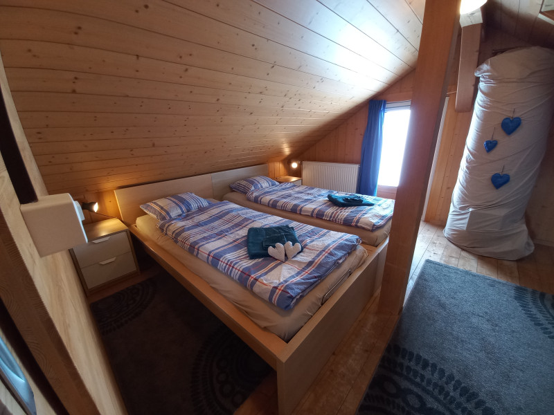 Im 1. Stock befinden sich 2 Zimmer. Beide Zimmer verfügen über 2 Betten. Für alle Betten sind Duvets, Kissen und Bettwäsche vorhanden.