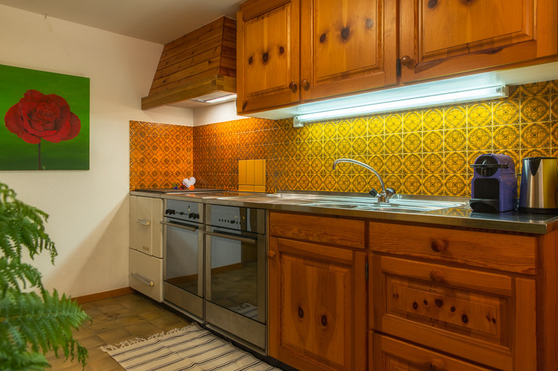 Die Küche ist komplett ausgerüstet und verfügt über einen Kochherd, Backofen und eine Nespresso-Kaffeemaschine. Auch Küchentücher und Abwaschlappen sind vorhanden. Ebenso die Frottierwäsche fürs Bad.